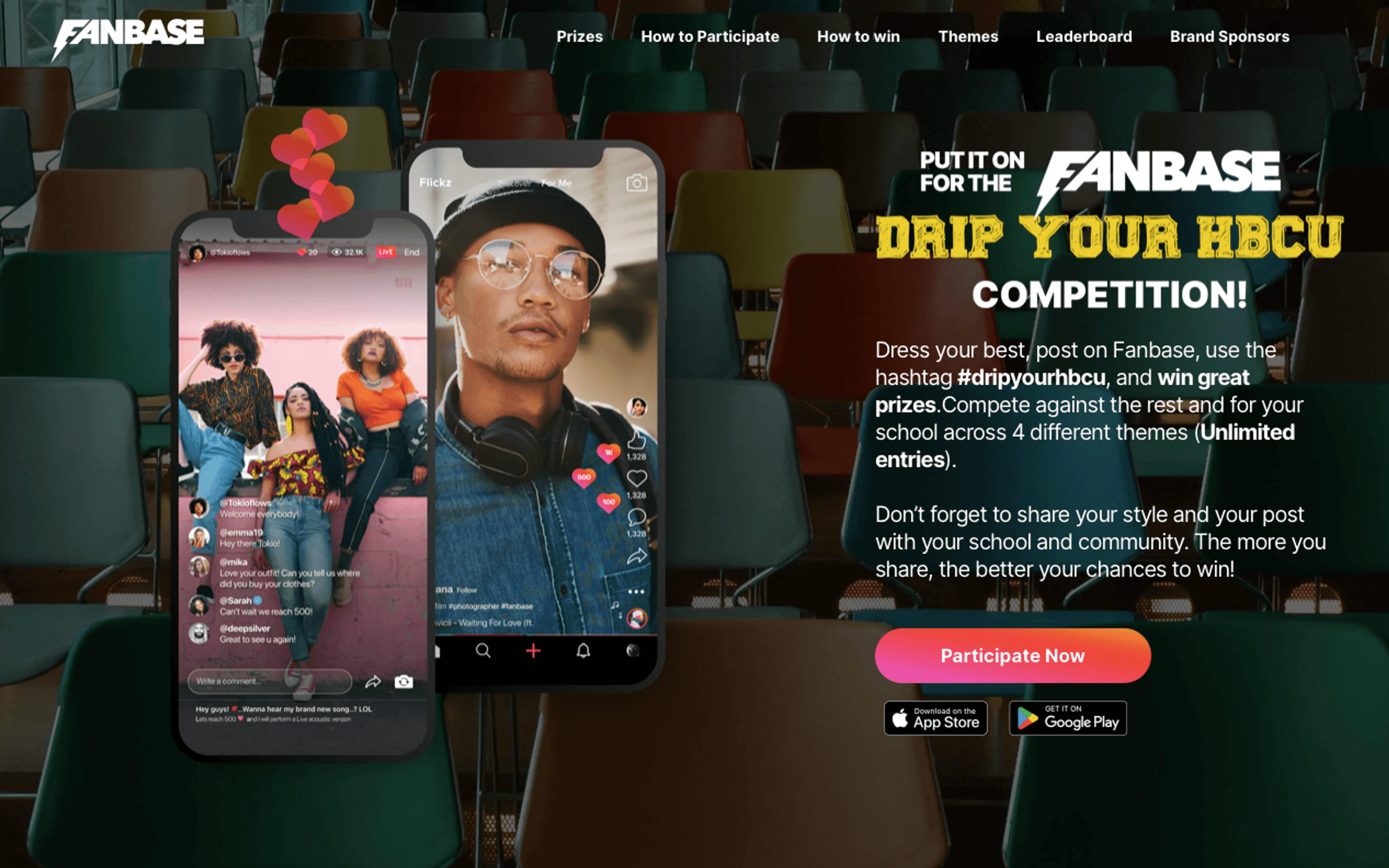 The #DRIPYOURHBCU campaign is an initiative put on by Fanbase and powered by The Propel Center. This campaign was originally started as we cemented our partnership with Propel. The Propel Center's purpose is to break down systemic barriers that personally impact HBCUs. At Fanbase, we are the first Black-founded social media company, and take pride in uplifting the Black community. We knew that we had to connect with Propel and create an internship for students to get involved with Fanbase and see what goes into the making of a successful app. This was also especially important to us because we want our younger audiences to keep growing (as the largest audiences on social media apps are younger individuals), and what better way to bring in the younger generation than to have our Propel interns reach out to other students on their HBCU campuses?